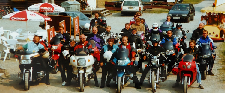 Eine tolle Bikergruppe aus Esslingen am Neckar war auf unserer Ardennentour zu Gast. Jürgen Dittrich hatte sich mit 11 seiner Bikerfreunde angemeldet. Sie waren zum Jubiläum mit einem GROSSEN Flachmann angereist. . . Selbstgebrannter Marillienschnaps war drinne! Tolles Wetter und eine einmalige Stimmung herrschte auf unserer Jubiläums-Ardennentour!
